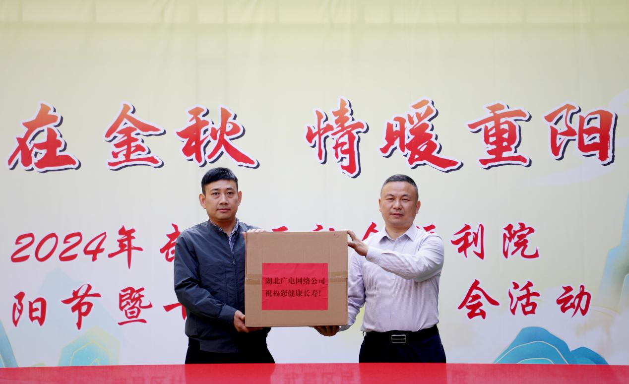 重温经典 情暖重阳——湖北广电网络走进武昌区福利院开展慰问活动 金秋送爽,丹桂飘香,又是一年重阳佳节。为深入贯彻习近平总书记关于老龄工作的重要指示批示精神,认真落实国家广电总局、民政部关于积极开展“重温经典”频道进养老机构活动的工作要求,进一步丰富老年人精神文化生活,更好地服务养老社会建设,10月11日上午9时,yl23411永利集团走进武昌区福利院开展慰问活动,为老人们送上节日祝福及慰问礼物。 公司党委委员、副总经理、武汉分公司(武汉投资公司)党委书记张龙飞向老人们赠送节日礼物并致以节日祝福。他说,感谢武昌区福利院在今天这个特殊的日子给我们这次难得的机会,为老人们带来湖北广电网络的一份心意。希望“重温经典&rd 2024-10-11
