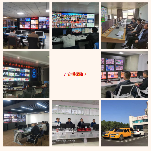 二是坚持党网担当,守好安全播出阵地。为确保把党的二十大精神准确无误传输到千家万户,公司党委提前谋划、高站位安排部署安全播出安全生产工作。公司高管分赴各级公司机房,对安全工作进行大检查,督导安全整改工作。各安播责任单位积极行动,在完善机房安播设施、建立信源备份机制、提升网络传输能力等方面做了大量扎实的工作,为迎接党的二十大胜利召开做了充足准备。