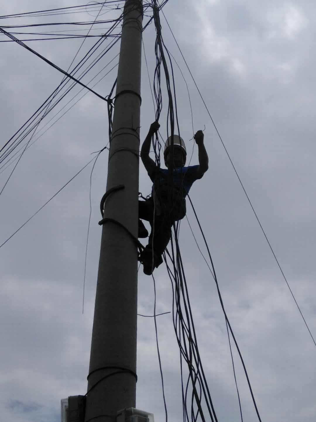多年来,李子武骑着摩托车上山下乡,风里来雨里去,伤寒感冒是家常便饭,长年累月的工作,给自己留下了风湿关节病。这位年过半百的老员工不言老,却毅然坚持每天爬电杆、溜滑索。