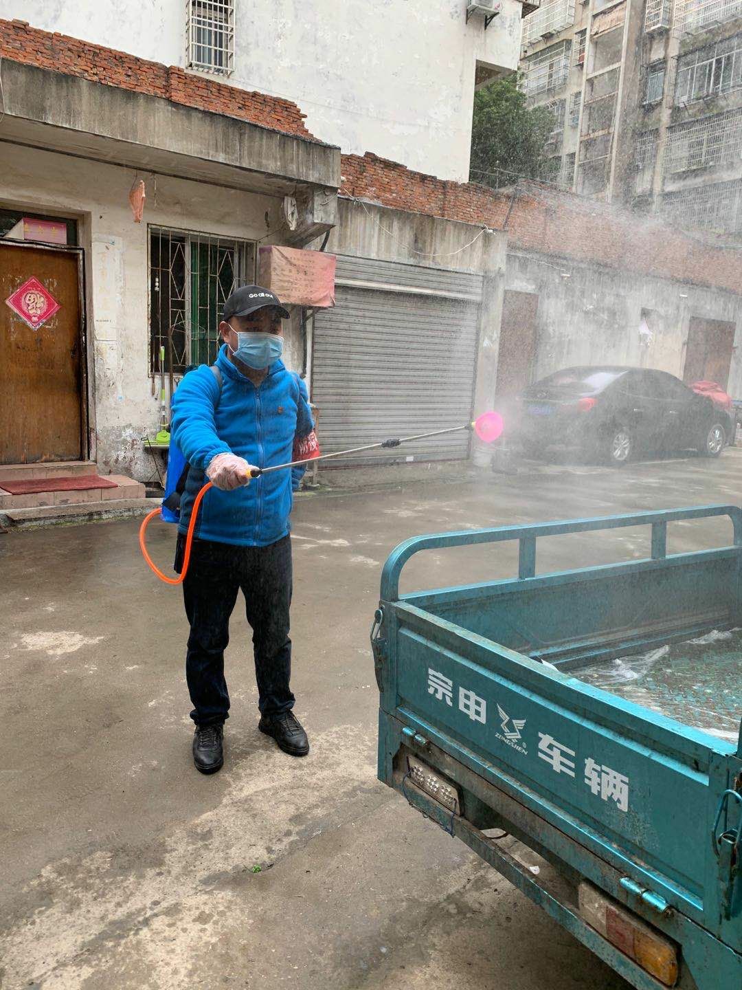 8:30,“胖伢”匆匆赶到负责的社区防控点——新兴大厦和温泉路市场,首先带领大家为小区消毒,接着开碰头会,对昨天的摸排情况进行了解,对社区居民情况进行问询,最后为居民代购近期所需的生活用品并分发。对需要上医院看病或购买药品的居民派专人跟踪服务,并督促值守小组同事落实到位,解决居民燃眉之急。